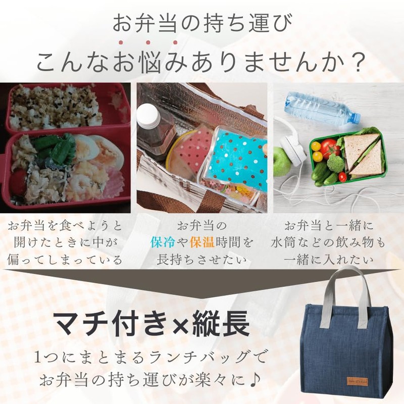 Lunch Bag, Lunch Bag, Cold Insulation, Gusset, Wide, Stylish, Can Hold Water Bottles, Wide Gusset, Long, Washable, Korea, Thermal, Velcro Tape, Large, Men's, Women's, Waterproof, Drawstring Cloth,