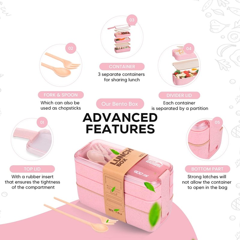 • Stylish and Vibrant: Our pink bento box adds a pop of color to your lunch routine. Stand out from the crowd with this trendy and eye-catching lunch container.