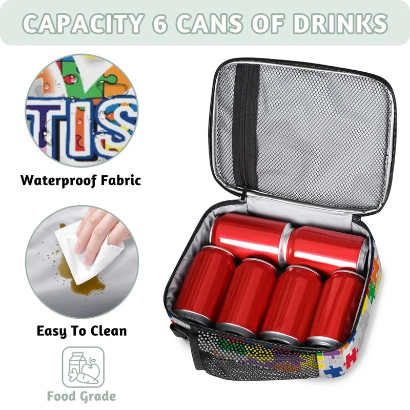 - 【Inspirational Design】This lunch box is themed around autism awareness and patterned with symbolic puzzle pieces, hearts and motivational sayings like [It’s ok to be different], which showing the kindness and encouragement. It is not only loved by children, but also inspires them to be brave and strong