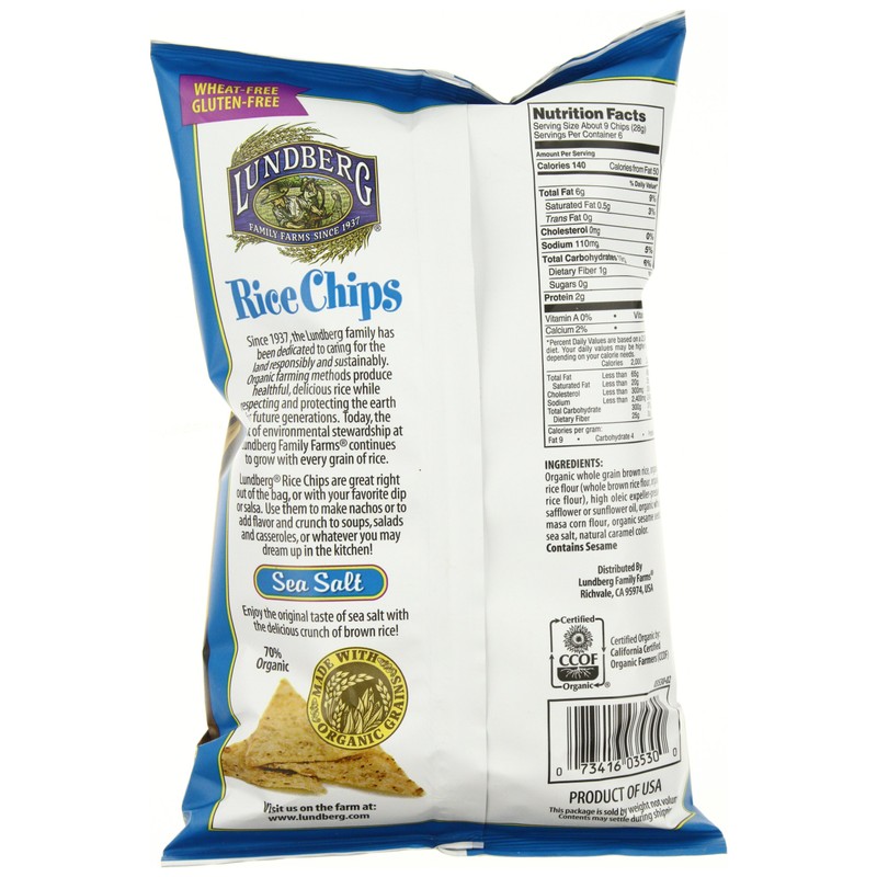 Lundberg Rice Chips, Sea Salt, 6 Oz
