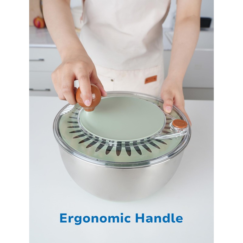 - LARGE PREMIUM STAINLESS STEEL BOWL: The salad spinner features a large, practical 5.3 quart 304 stainless steel bowl, ensures durability and a sleek appearance.