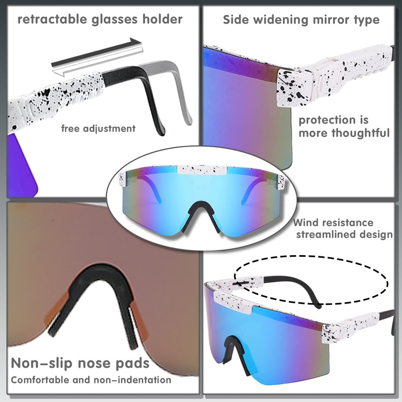 - Widely used: sports glasses cycling glasses are perfect for driving, cycling, running, fishing, golf, baseball, skiing, racing, climbing, parties and other activities. With the cool colours of these iridescent glasses, you will definitely stand out from the crowd, whether you are going to a party/rave/bar/festival/anywhere.