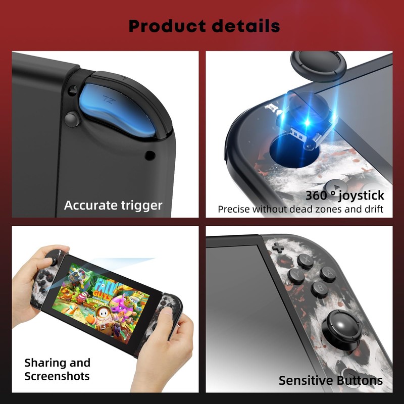 - 【6-axis Motion Sensing】Both the left and right Switch joypad features 6-axis motion sensing, allowing precise tilt detection for accurate aiming and movement. The Switch controller allows flexible movement in various directions and angles, giving you more precise control and an enhanced, realistic gaming experience.