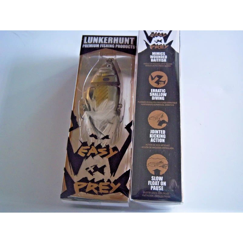 Predators looking for an easy meal usually pick off the weak, slow, or injured in a pack. Lunkerhunt’s Easy Prey hardbait mimics a wounded baitfish kicking through its final moments, making it an easy target for your next catch. This double-jointed lure sits horizontally in the water, dressed with three feathered treble hooks that give it a unique presentation at rest, and a high hookup probability in action. Once you start a retrieve, it kicks back to life with a vertical wobble just like an injured baitfish. At rest, this lure will then float back up in the water column, driving fish crazy.