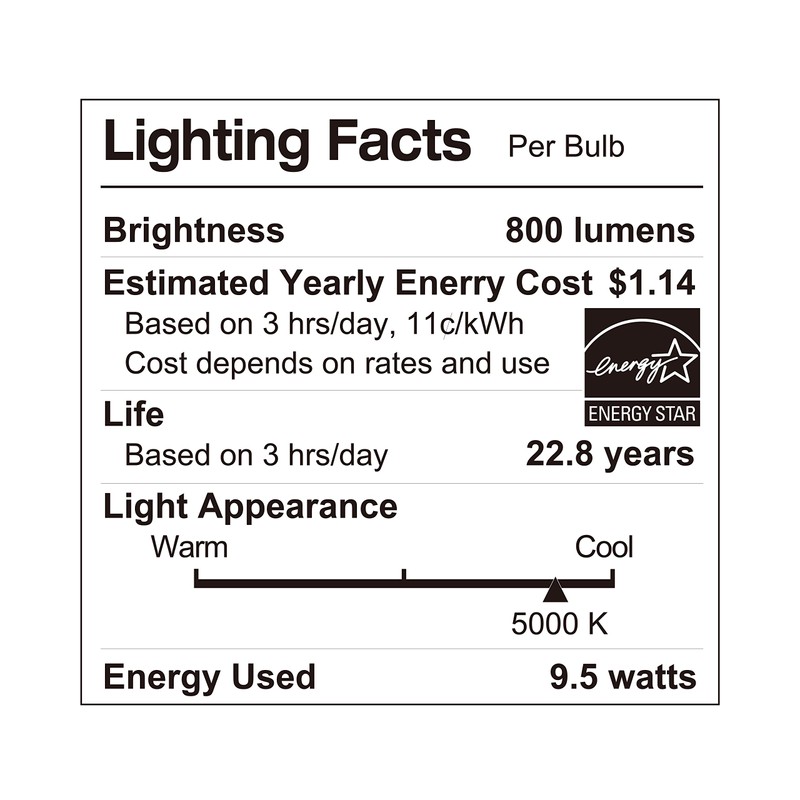 • ENERGY SAVINGS - 800 Lumens, Use only 9.5W (60W Equivalent) and save 84% instantly.