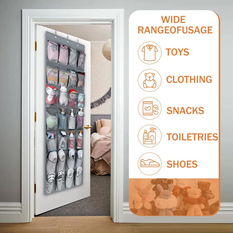 - Small and spacious: The slim profile of the hanging shoe organiser fits perfectly behind the door and the 28 large pockets provide plenty of storage space without obstructing the door's movement