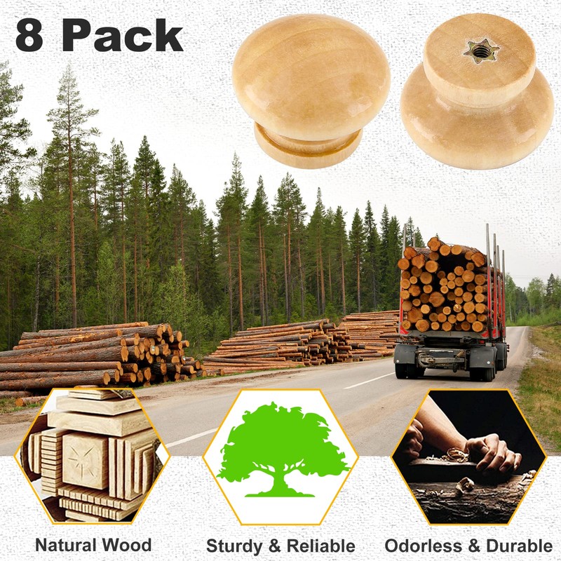 - Package Included: 8 x Natural Wood Cabinet Knobs, Diameter: 1-1/4 Inch/32mm, Height: 1 Inch/25mm, Mounting Area: 7/8 Inch/22mm, M4 x 25mm screws included.