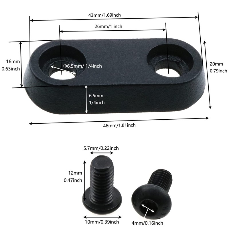 - Overall dimension: 46x20x6.5mm / 1.81" x 0.79" x 0.25"; Screw hole spacing: 26mm / 1"