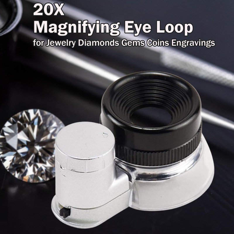 Lupa de lupa iluminada con 20 luces LED de aluminio de alta calidad para joyería con diamantes, gemas y monedas grabados