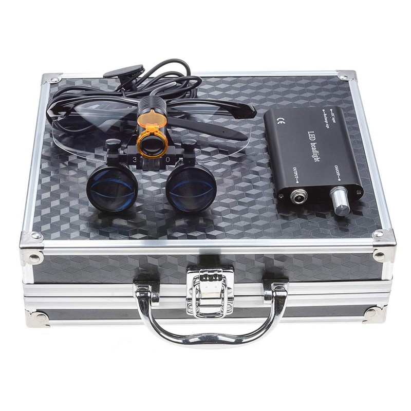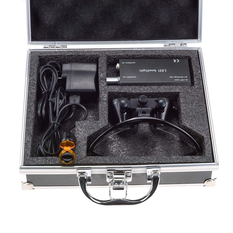 Lupas binoculares 3.5X + lámpara de lupa LED faro con filtro caja de aluminio negro