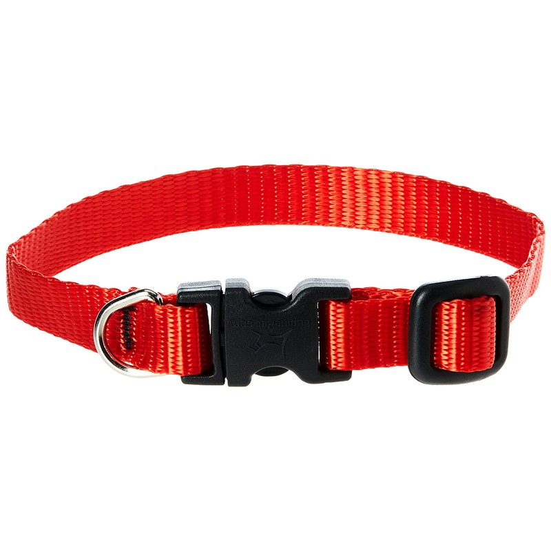 All Lupine products are proudly built in Conway, New Hampshire and Guaranteed (Even if Chewed). Made from woven nylon, in six rich colors. 1/2” wide collars are suitable for puppies and small dogs up to about 20 lbs. Features strong bar-tack stitching, welded D-ring and a custom designed side-release buckle. Matching leads available. Three adjustable size ranges. To determine collar size, measure snugly around the middle of the dog’s neck, then add an extra 5-percent for a comfortable fit. Machine wash, warm water, mild soap (no bleach or bleach alternative). Air dry. Lupine products are not recommended for tie-out.