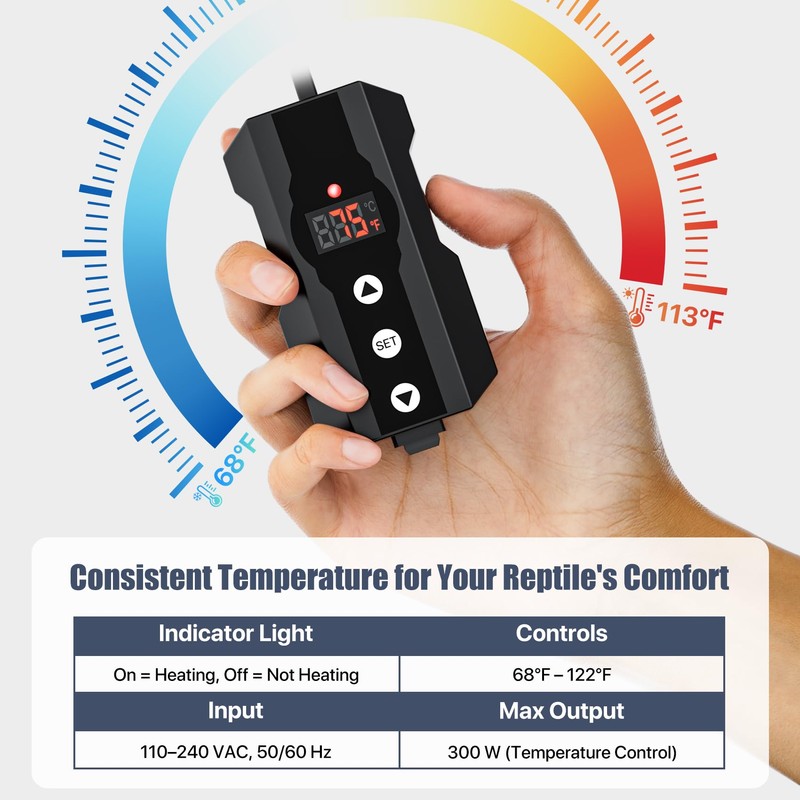 - ๐๐จ๐ฆ๐ฉ๐๐ญ๐ข๐๐ฅ๐ ๐ฐ๐ข๐ญ๐ก ๐๐๐๐ญ ๐๐๐ญ๐ฌ, ๐๐๐ฆ๐ฉ๐ฌ & ๐๐๐ซ๐๐ฆ๐ข๐ ๐๐ฆ๐ข๐ญ๐ญ๐๐ซ๐ฌ: Specifically designed as a heat mat thermostat, it also supports ceramic emitters and heat lamps. Ideal for most reptile heating systems and terrarium environments.