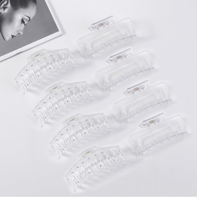 LuSeren 8 Pack ClearHair Clips for Women 4.3 Inch Large Hair Claw Clips for Women Thin Thick Curly Hair, Big Banana Clips,Strong Hold jaw clips