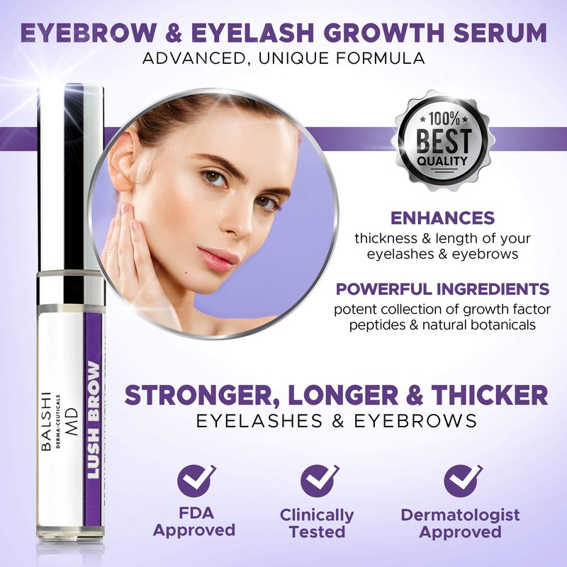 • LONGER & THICKER BROWS & LASHES IN 60 DAYS!- Lush Brow Serum was scientifically created for Dr. Balshi's dermatology clients and now it's available to YOU! After 30 days you'll start to notice increases in length and thickness of your eyelashes and eyebrows and in as little as 60 days for they will grow in nice and full! Our natural, botanically driven ingredients absorb into hair follicles and stimulate eyelash and eyebrow growth making them stronger, longer and thicker. Top lash & brow booster