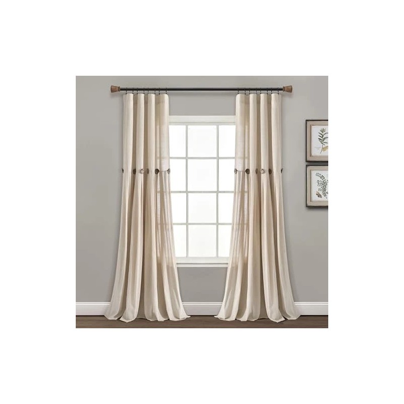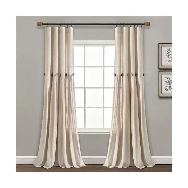Lush Decor 40x84 Linen Button Window Curtain Panel Modern Farmhouse Rustic Decor Single ...