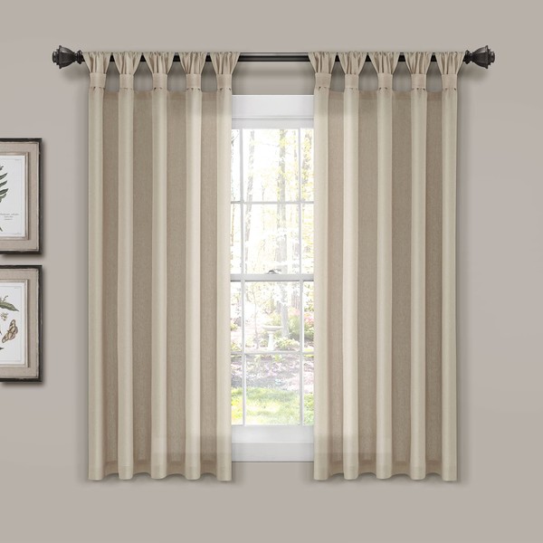 Lush Decor Burlap Knotted Tab-Top Window Curtain Panel Pair, 45"W x 63"L, Dark Linen