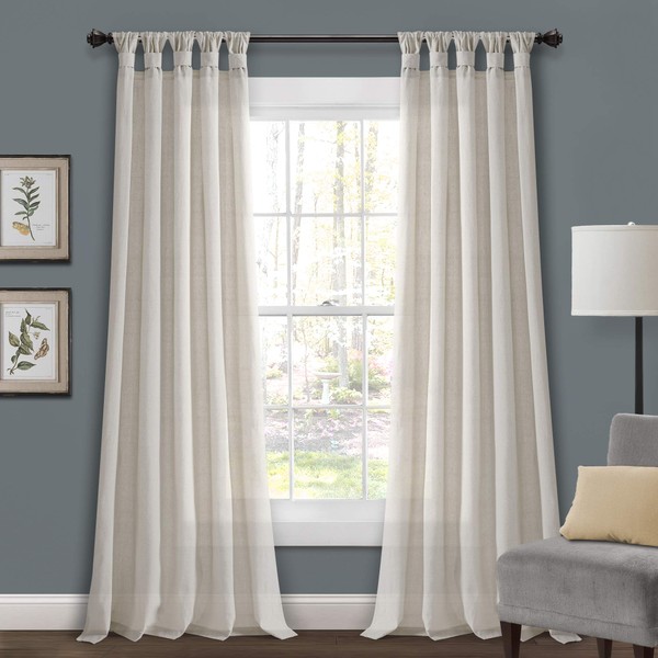 Lush Decor Burlap Knotted Tab-Top Window Curtain Panel Pair, 45"W x 84"L, Light Linen