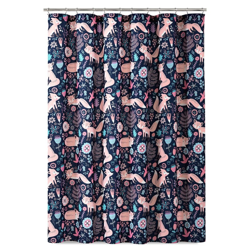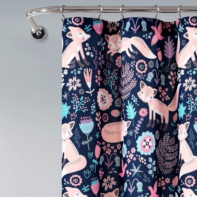 Lush Decor Pixie Fox Shower Curtain, 72" x 72", Navy & Pink