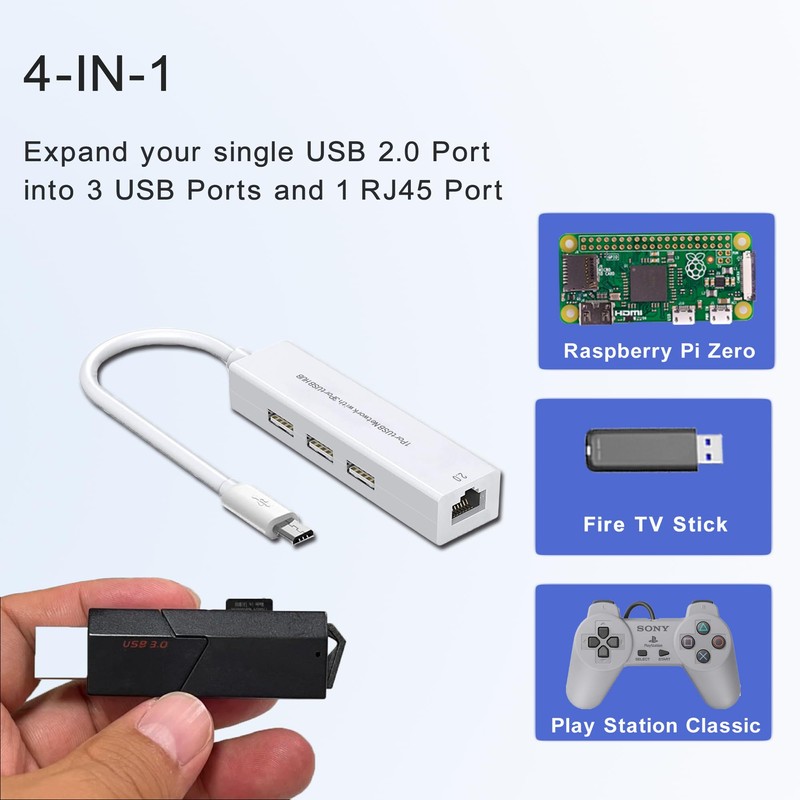 - VERSATILE CONNECTIVITY: 4-in-1 micro USB hub featuring 3 USB ports and 1 Ethernet port for expanded device connectivity options