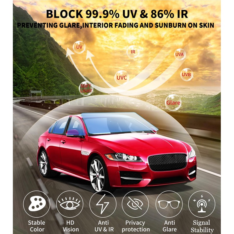 - HEAT INSULATION AND SUN PROTECTION: LUSSCAR car window tint adoption of magnetron sputtering technology to effectively block 99.9% of ultraviolet rays and 86% of infrared rays, thus lowering the temperature inside the car, reducing the frequency of air conditioning use, and preventing the car interior from aging and fading. And our removable car window tint film will not have air bubbles to protect your car's paint.