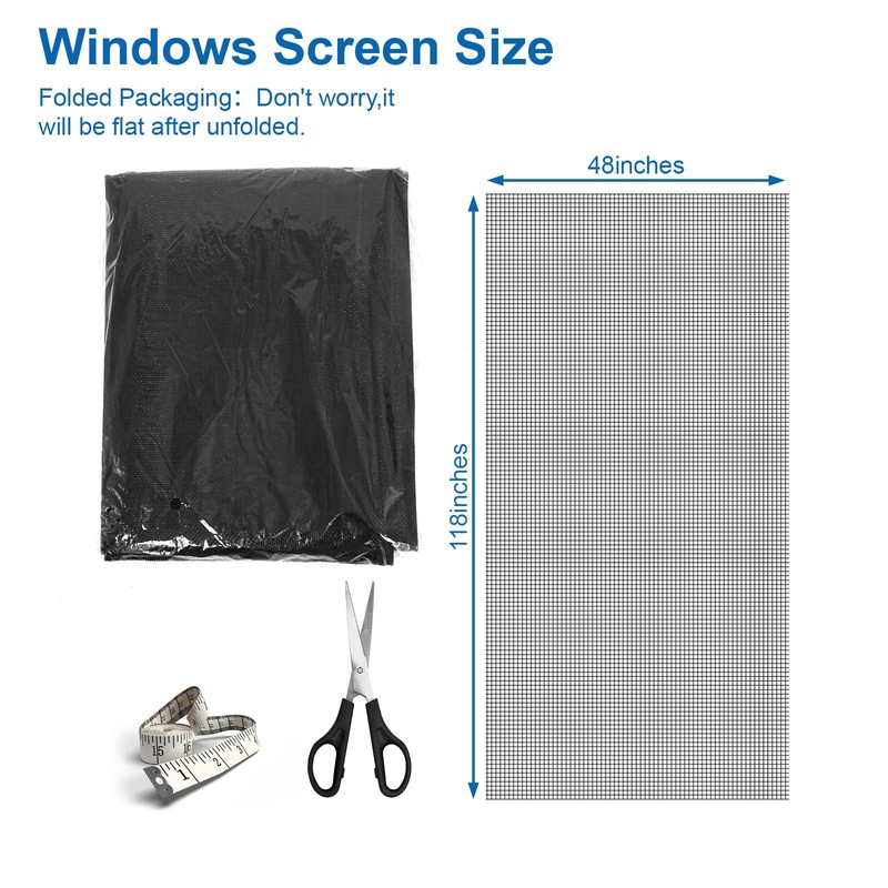 - Easy to Install: The window screen mesh for windows doors is easy to cut, measuring 48 x 118 inches, you can easily cut it into the shape and size you need. Even if you are not a professional, you can do it well.