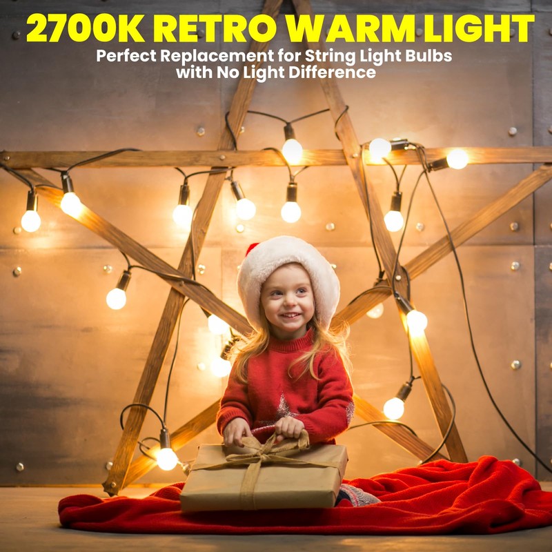 - Cozy Ambiance: 2700K warm white light creates a vintage and magical glow for holidays, patios, weddings, or everyday charm. Seamless string light bulbs replacement, no light difference