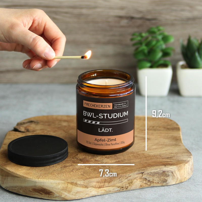 Lustige Duftkerze mit Studenten Spruch | Handgemacht aus Sojawachs | In Geschenkbox | Valentinsgeschenk | Uni, Kommilitonen, Abschluss, Studium,Kollegen,Bachelor Master |Apfel-Zimt