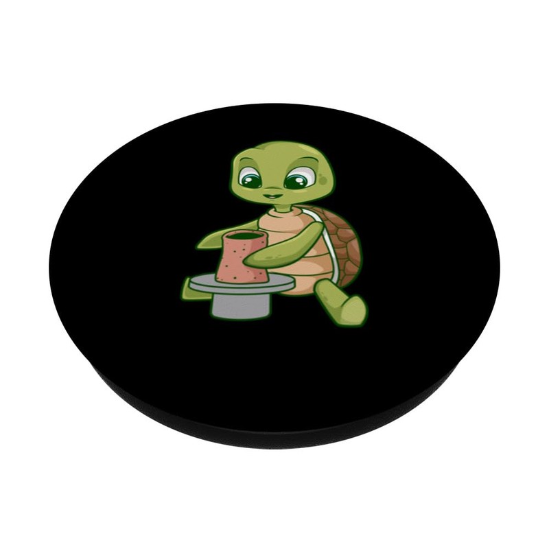 Lustige Schildkröte beim Töpfern PopSockets Klebender PopGrip