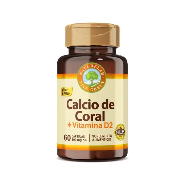 Calcio de Coral + Vitamina D2 Naturelab® | Excelente fuente de Vitamina D2 y Lecitina de Soya | Suplemento | Sin Gluten | Sin GMO´s | Sin Lácteos | Sin Conservadores | Contiene: 60 Cápsulas