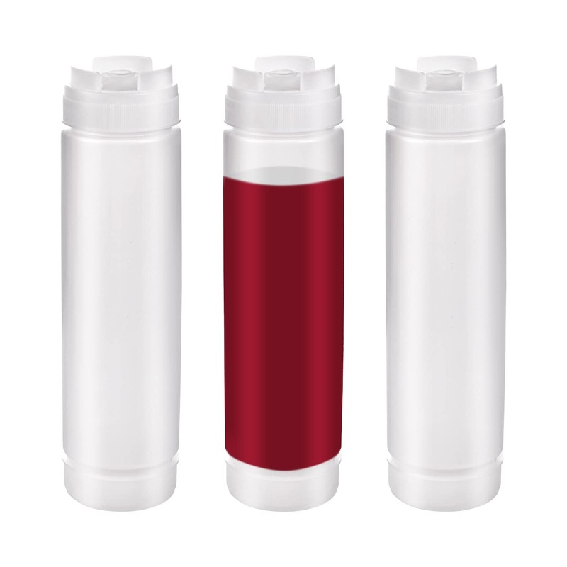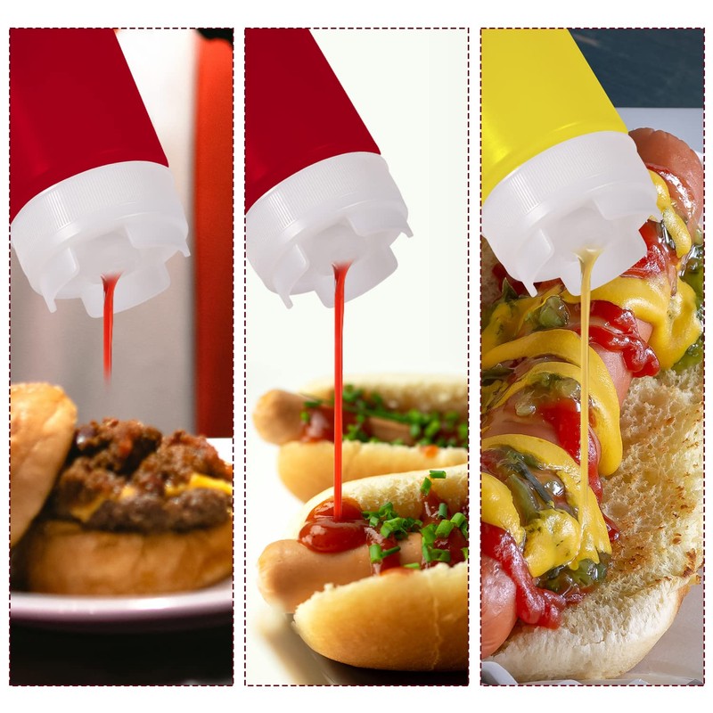 - Easy To Clean: Our squeeze bottles for sauces come with a large 2inch/5cm double valve cap that is easy to clean and can be reused. Non-microwavable and top rack dishwasher safe.
