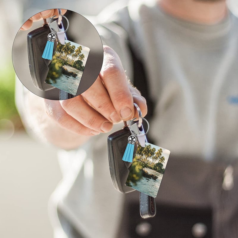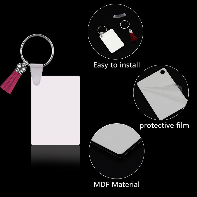 - 【Premium Material】Our blank keychains are made of medium density fiberboard material (MDF), lightweight and durable, with good hardness and smooth surface, not easy to break and fade, non-toxic, can serve for a long time. The tassel pendant is made of high quality suede leather with comfortable hand feeling. Besides, it is fixed by a plastic cover coated with metallic paint, which is both beautiful and practical.