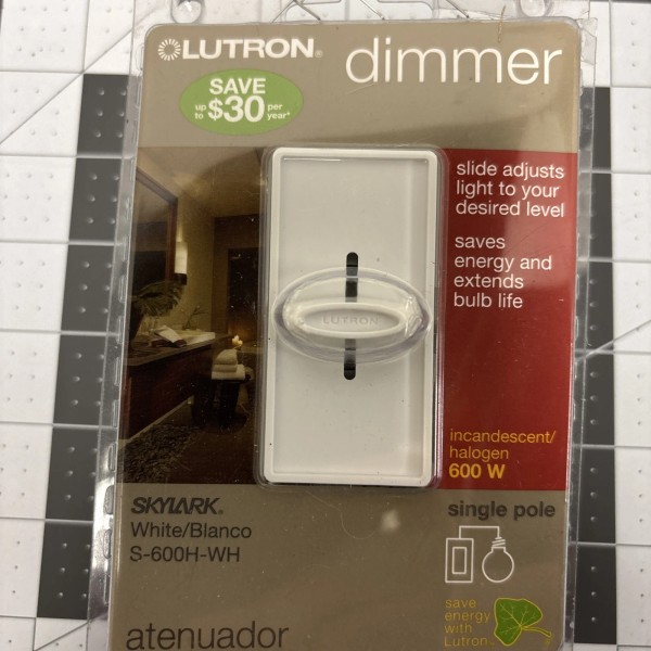 Lutron S-600H-WH Skylark 600-Watt Single Pole Slide Dimmer Incandescent/H