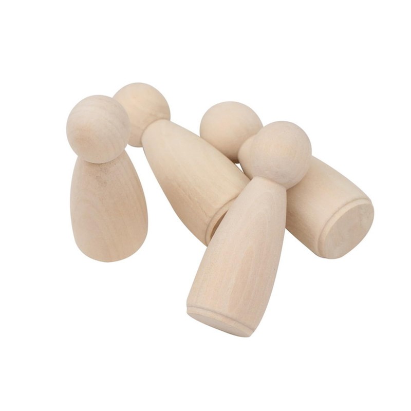 The bodies of the wooden peg dolls are made of safe and non-toxic wood. New, realistic and charming appearance, clear texture and uniform texture. Wooden human figures are sanded smoothly so children can paint or stain creatively.