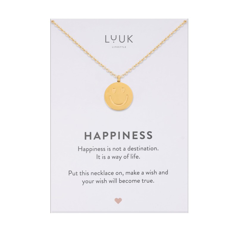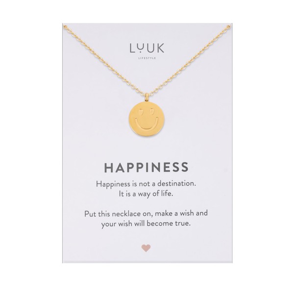 - Simple design – beautiful, filigree stainless steel necklace in timeless design with smiley pendant in gold including saying card. The necklace looks feminine, stylish and can be combined in many ways.