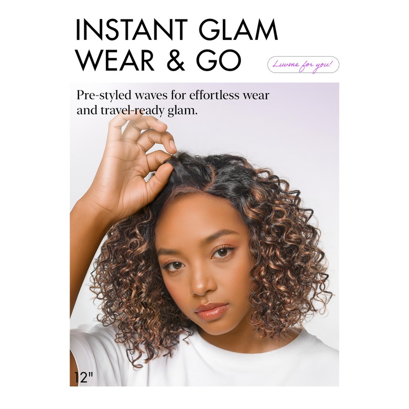 LUVME HAIR 100% Human Hair Wigs Curly Deep Wave Glueless Lace Front 12 Inches Pre Cut Plucked Hd Lace Short Wig Ready To Go Highlight Color Straight Bleached Knots Side Part Black Wigs