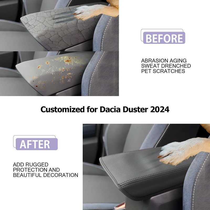 LUWU Compatible with Dacia Duster 3 2024 2025 (Models with Armrests) Centre Console Armrests Leather Car Protection Cover Interior Accessories Dacia Duster 3 Accessories (Thin)