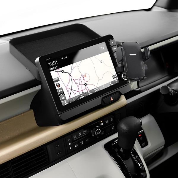 LUWU N-BOX JF5/6専用スマホホルダー 【オープントレイで収納力UP】 360度回転・ワンタッチクリップ 携帯ホルダー スマホスタンド エヌボックス アクセサリー カスタムパーツ