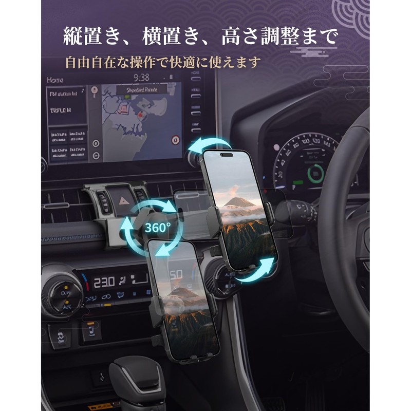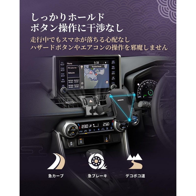 【しっかりホールド、走行中も安心】 LUWUのRAV4 10系/15系 延長アームスマホホルダーは、独自開発の固定メカニズムを採用しており、どんな道でもしっかりとスマホをホールドします。急加速やカーブでもズレることなく、運転中の視認性を確保。さらに、内蔵された衝撃吸収ジェルパッドが振動を吸収し、大切なスマホをしっかり守ります。安心して運転に集中できる環境を提供します。