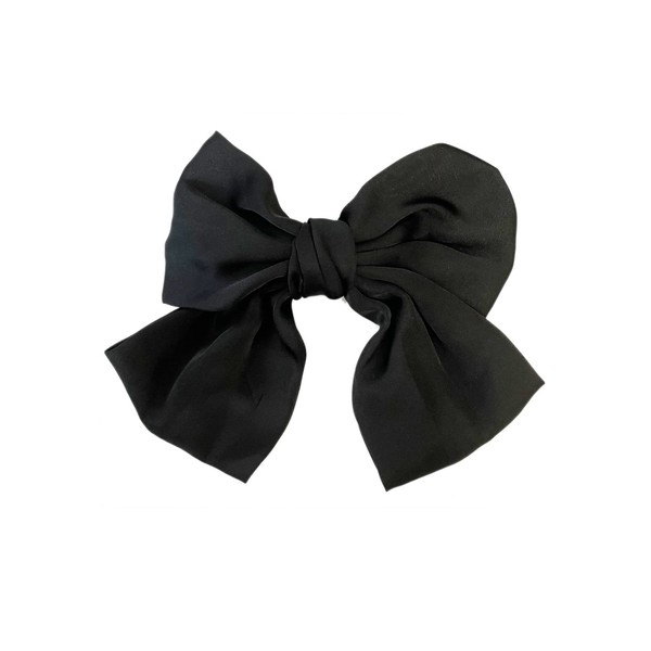 LUX ACCESSORIES Black Satin Over-sized Bow Hair Clip