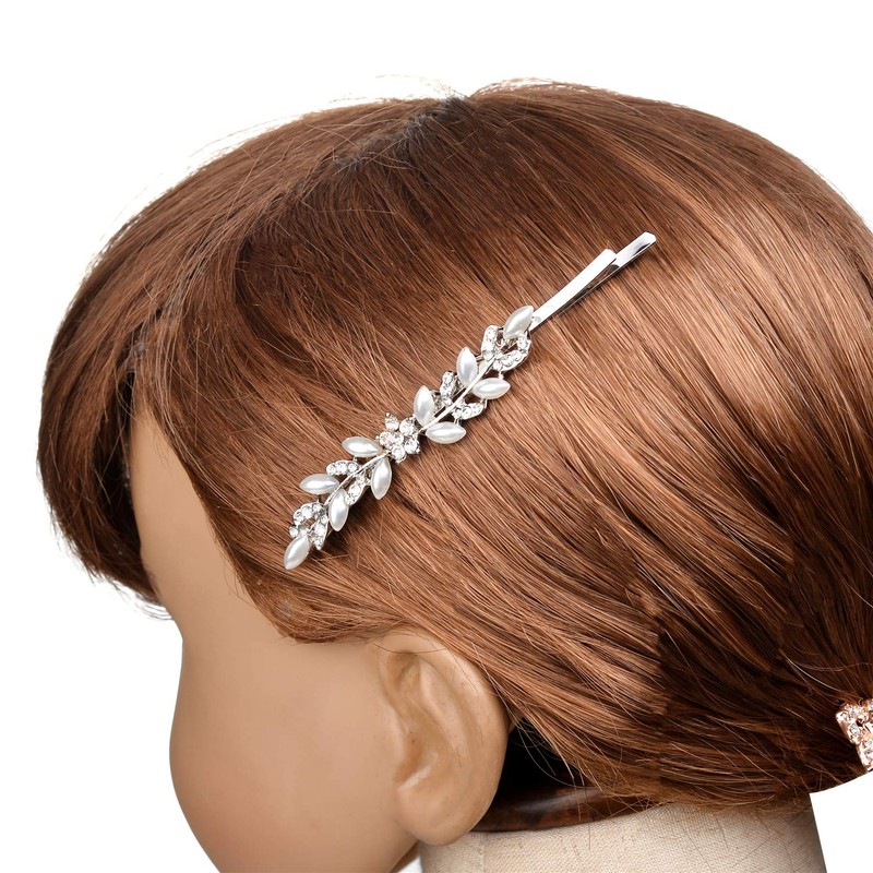 LUX ACCESSORIES Silver White Beaded Pearl Clear Crystal Rhinestones Set of 2 Pieces Wedding Bridal Prom Hair Pins