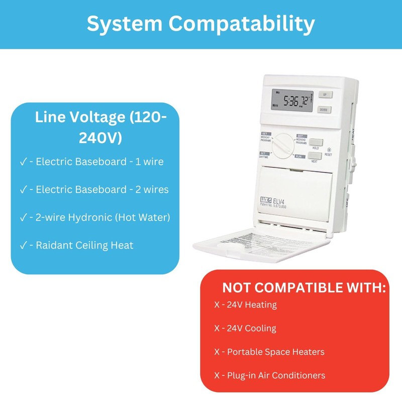 Lux ELV4 Line Voltage Programmable 5-2 Day Thermostat; 1 Heat, Line Voltage Only