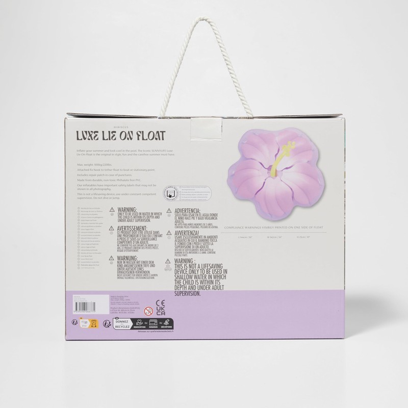 Inflate your summer and look cool in the pool. The Hibiscus Luxe Lie-On Float is stylish, fun, and carefree, perfect for bringing the heat to pool parties and lazy afternoons spent seaside. Designed in an easy-to-lie-on shape and with its luxurious size, floating has never been so effortlessly comfortable. Set to be one of this season's most trendy floats, turn heads with its hibiscus flower shaped design and hazy lilac and sun yellow colourway that will have you radiating good times only.