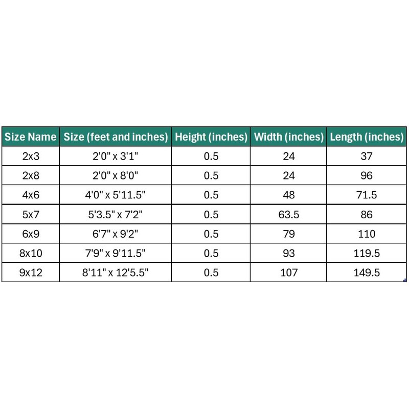 - Actual dimensions: 2 feet 0 inches width by 3 feet 1 inch length