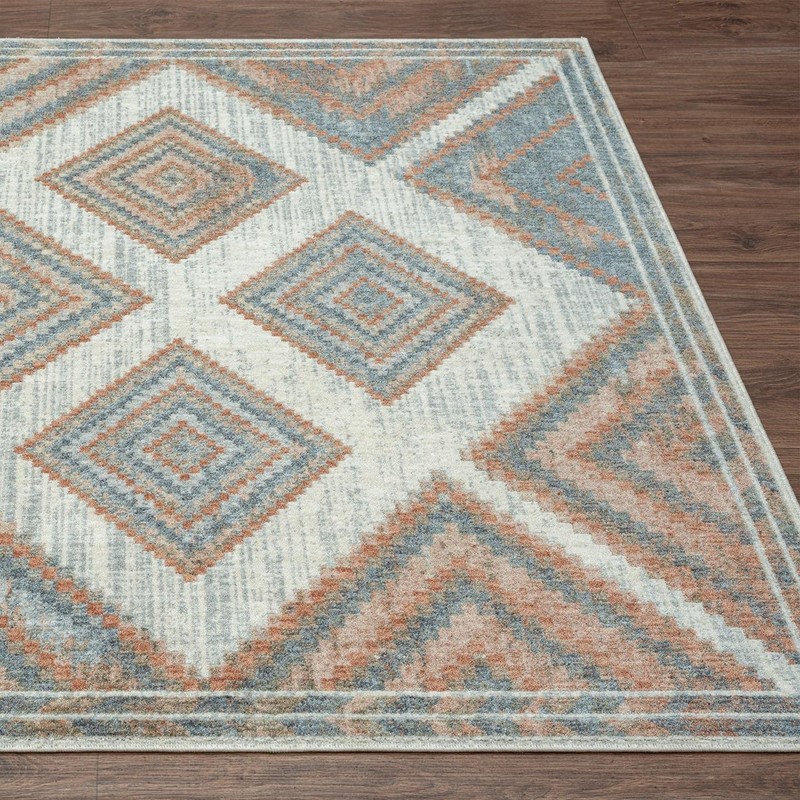 - INTRICATE PATTERNS: This 6x9 area rug has a geometric pattern with a Southwestern feel. Soothing shades of blue and orange lend subtle style to traditional living rooms and cozy family rooms. A comfortable tribal design carpet will make a statement in any room.