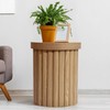 Elevate your home decor with our exquisite living room end table, offering sophistication and charm in abundance! This captivating piece seamlessly blends modern aesthetics with organic design elements, showcasing a fluted drum design and a serene oak finish for a touch of elegance. Whether adorning your living room or creating a tranquil reading nook, this small round table is the ideal choice. Plus, with its easy spot-clean feature, maintenance is a breeze! Picture yourself savoring your morning coffee or diving into a captivating novel atop this mid century modern side table - its contemporary silhouette and organic allure provide the perfect backdrop for your daily activities. Don't delay in enhancing your home decor - seize the opportunity to bring home this exceptional tall side table today!