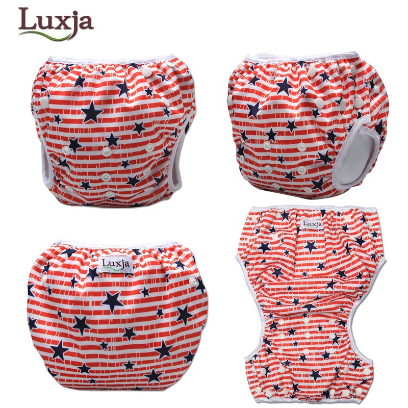 Luxja Reusable Swim Nappy (Pack of 2) Adjustable Nappy for Baby (0-3 Years) Washable, Dolphin + Starfish