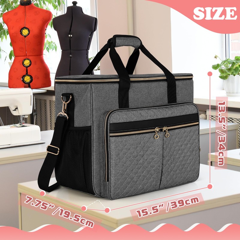 • DIMENSIONS: 15.5" x 7.75" x 13.5" (exterior size). Fits most standard size sewing machines (compatible with Brother*, Singer* and Janome*, *LUXJA bag isn't associated with the above brands).