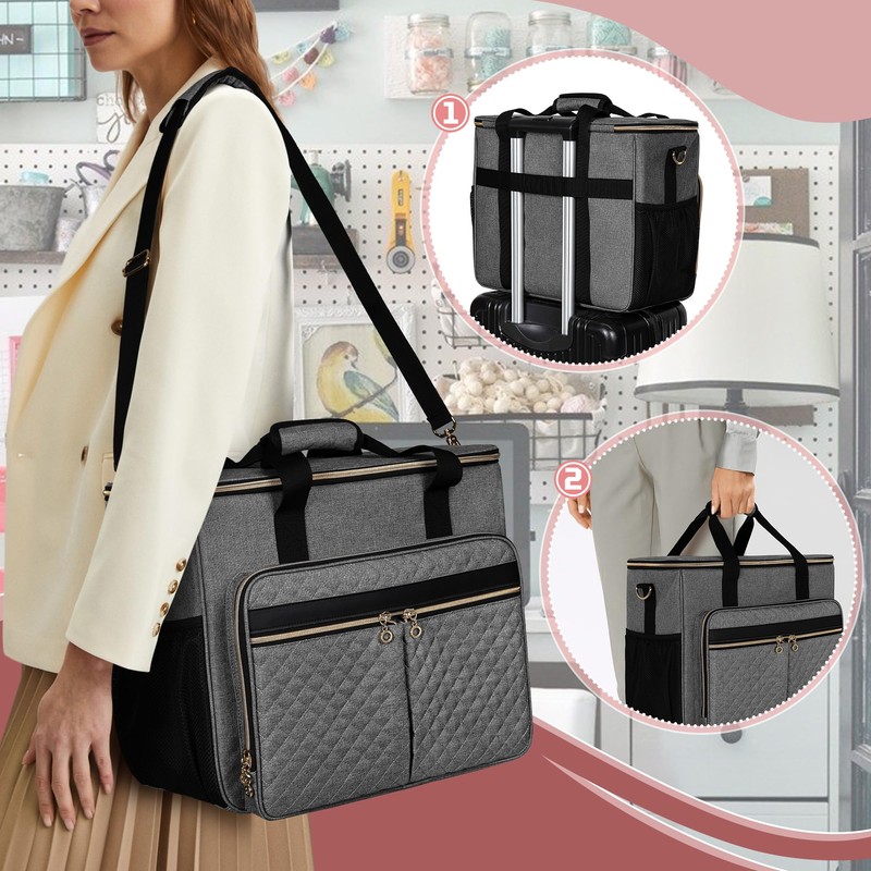 LUXJA Sewing Machine Case with Multiple Pockets, Portable Sewing Machine Bag Compatible with Most Standard Brother, Singer, Janome Sewing Machines, Gray