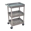 Luxor/H.Wilson Three Shelf Rolling Industrial Utility Tub Cart with Handle, Gray, 24 in W x 18 in D x 39.25 in H