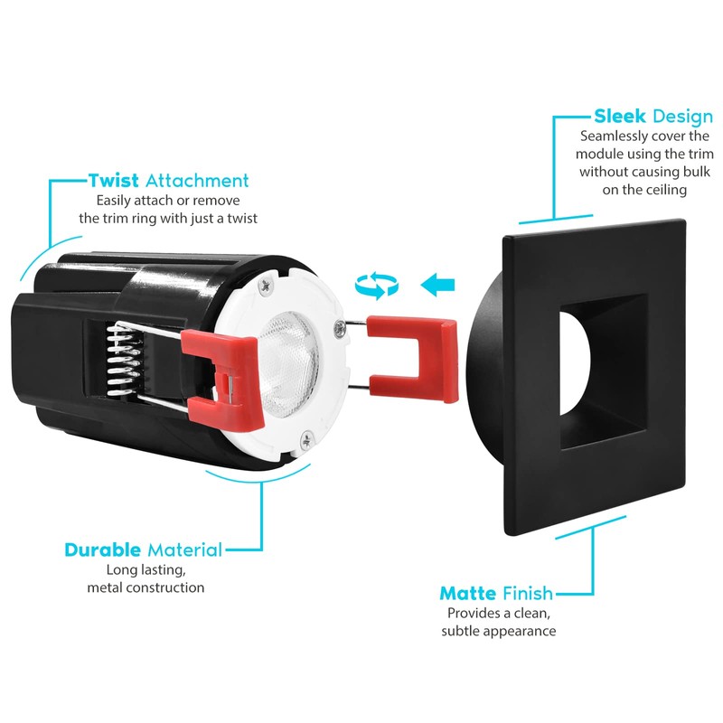 - EASY INSTALL - Get these recessed spot lights set up in just a few simple steps since everything you need is in one complete kit! Cut a 2.12" hole into your desired location, fit the interchangeable trim to the fixture with it's twist lock feature, connect the wiring in the included junction box, then fit the fixture into the space with the spring loaded clips for a flush to ceiling finish.
